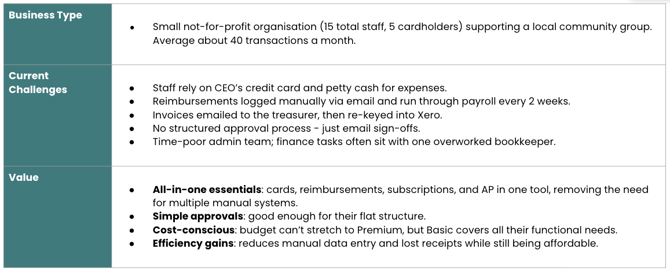Here’s what a typical Weel Basic client looks like - smaller teams with simple approvals who are ready to move away from shared cards, petty cash, and manual reimbursements.