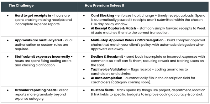 If Premium saves even a few hours a week chasing receipts, approvals, or fixing errors, it pays for itself - while giving you time back to focus on higher value work.